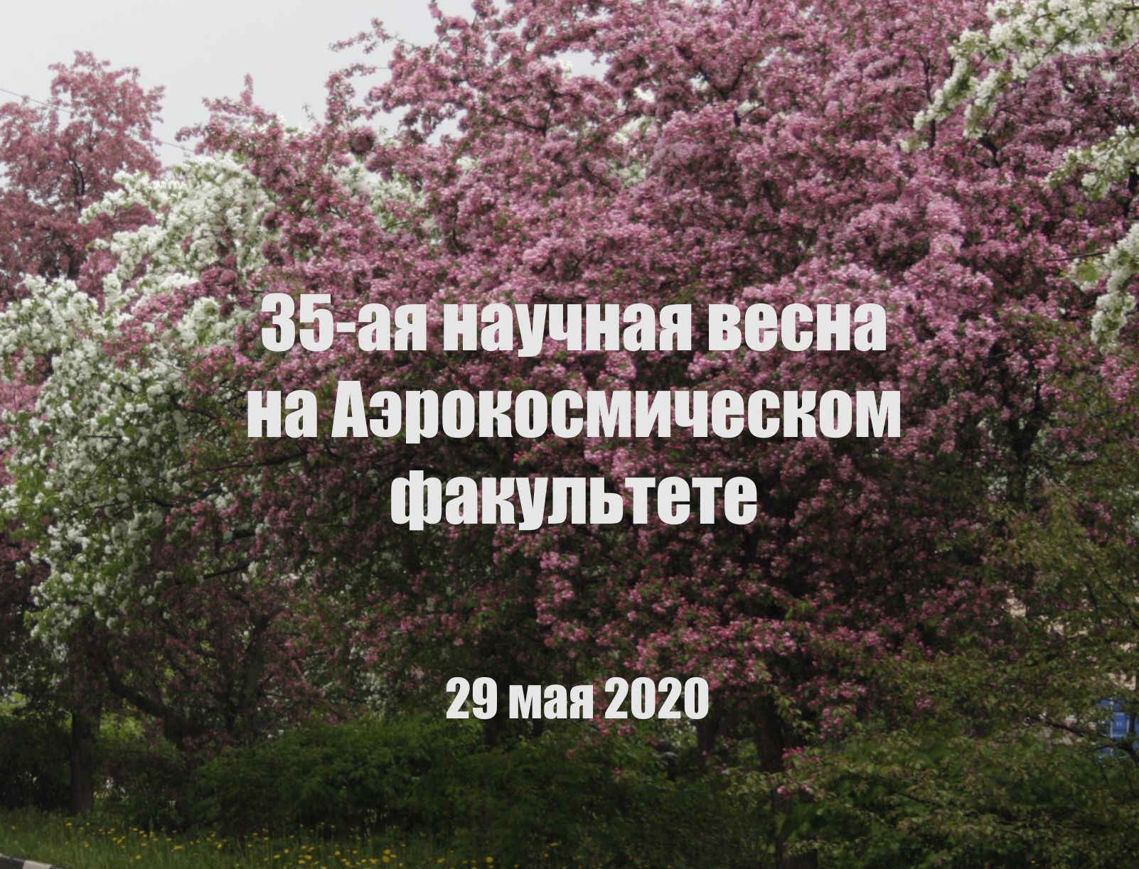 В дистанционном режиме завтра пройдёт секция аэрокосмического факультета МГТУ имени Н. Э. Баумана в рамках Всероссийской студенческой конференции «СТУДЕНЧЕСКАЯ НАУЧНАЯ ВЕСНА — 2020». Конференция посвящена юбилейным датам: 190-летию МГТУ имени Н. Э. Баумана, 60-летию кафедры СМ-2 и 35-летию Аэрокосмического факультета (АКФ).
