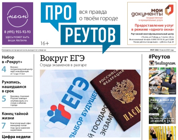 В четверг 16 июля вышел 27-й (332) выпуск бесплатной еженедельной газеты «ПроРеутов».