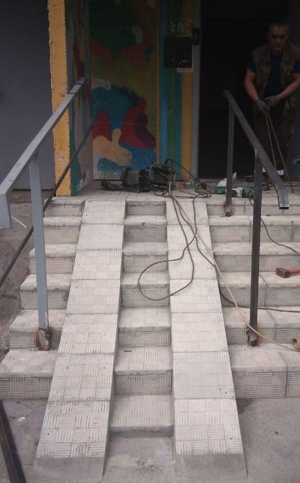 На месте было принято решение о реконструкции данного пандуса. Работа выполнена — в середине пандуса сделаны ступени для пешеходов.