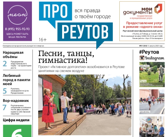 В четверг 13 августа вышел 31-й (336) выпуск бесплатной еженедельной газеты «ПроРеутов».