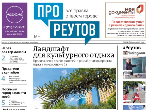 В четверг 20 августа вышел 32-й (337) выпуск бесплатной еженедельной газеты «ПроРеутов».
