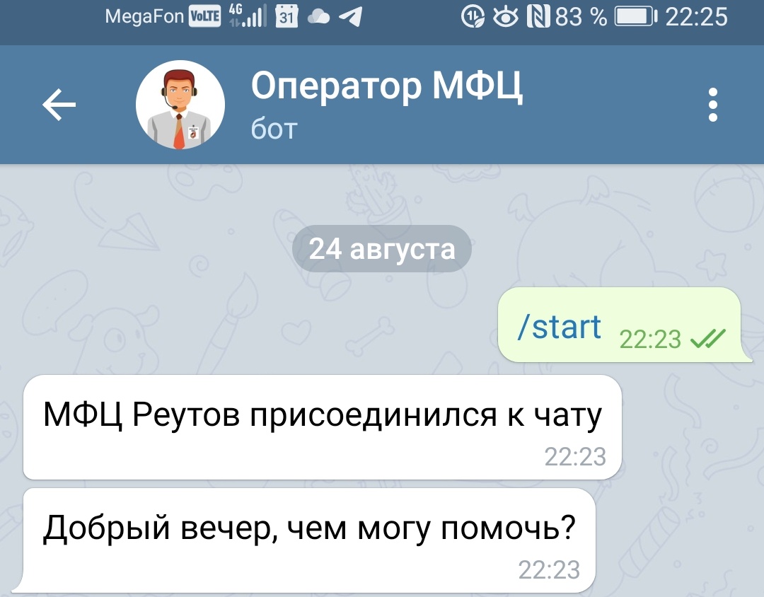 Сотрудники многофункционального центра «Мои документы» в Реутове запустили бота в мессенджере Telegram «МФЦ Реутов 2.2» для первичной консультации жителей. По запросу в нем отображается информация о деятельности МФЦ, справочные данные и сведения об услугах, которые могут получить заявители в офисах многофункциональных центров Московской области. Бот «МФЦ Реутов 2.2» также может подсказать какой офис центра расположен ближе всего и автоматически строит до него маршрут.