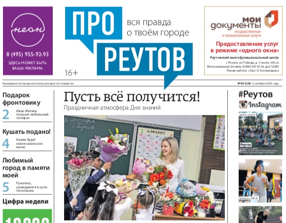 В четверг 3 сентября вышел 34-й (339) выпуск бесплатной еженедельной газеты «ПроРеутов».