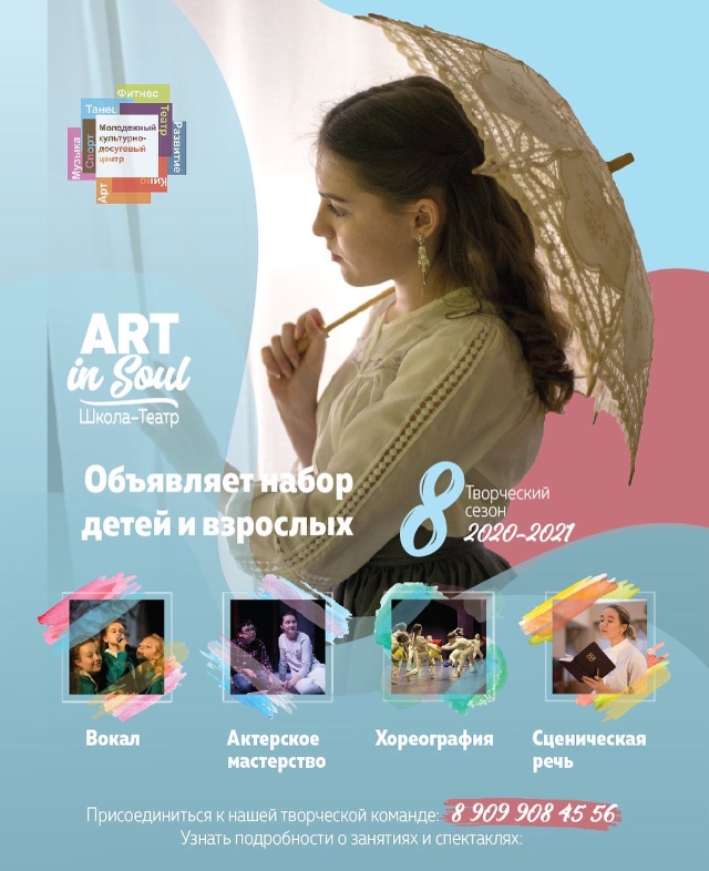 Известная в Реутове и за его пределами школа-театр «Art in Soul» входит в новый сезон. Коллектив набирает в свои ряды новичков и расширяет репертуар.