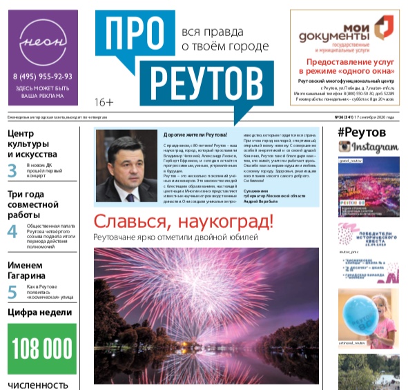 В четверг 17 сентября вышел 36-й (341) выпуск бесплатной еженедельной газеты «ПроРеутов».
