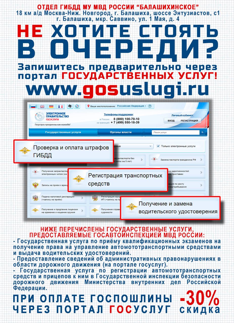 Ниже перечислены государственные услуги, предоставляемые Госавтоинспекцией МВД России: