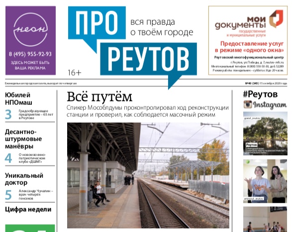 В четверг 15 октября вышел 40-й (345) выпуск бесплатной еженедельной газеты «ПроРеутов».