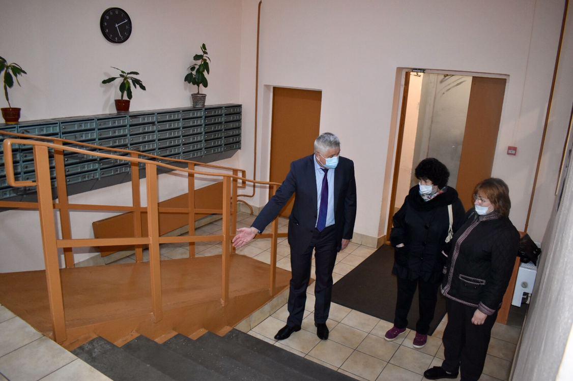 Вместе с начальником отдела ЖКХ администрации городского округа Маргаритой Галаховой депутат осмотрел ремонт подъездов в домах на улице Молодёжной и Юбилейном проспекте, а также пообщался с жителями подъездов.