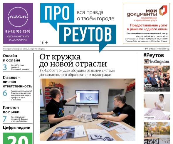 В четверг 22 октября вышел 41-й (346) выпуск бесплатной еженедельной газеты «ПроРеутов».