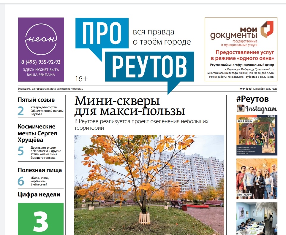 В четверг 12 ноября вышел 44-й (349) выпуск бесплатной еженедельной газеты «ПроРеутов».
