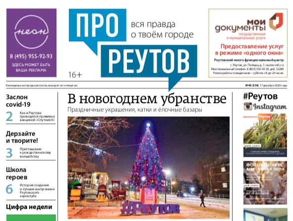 В четверг 17 декабря вышел 49-й (354) выпуск бесплатной еженедельной газеты «ПроРеутов».