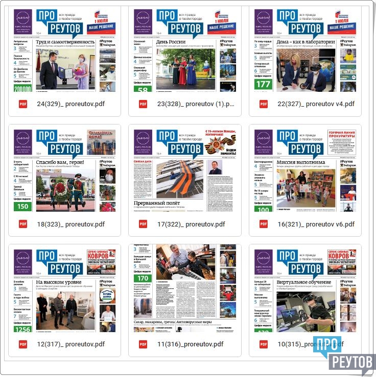 На этой странице по ссылкам вы можете скачать номера газеты "ПроРеутов" за 2020 год в формате PDF