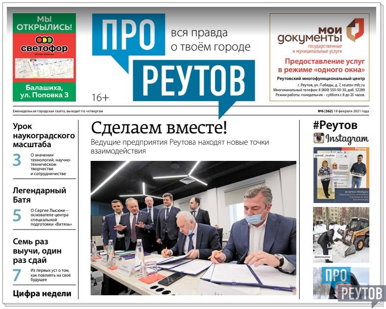 В четверг 18 февраля вышел 6-й (362) выпуск бесплатной еженедельной газеты «ПроРеутов».