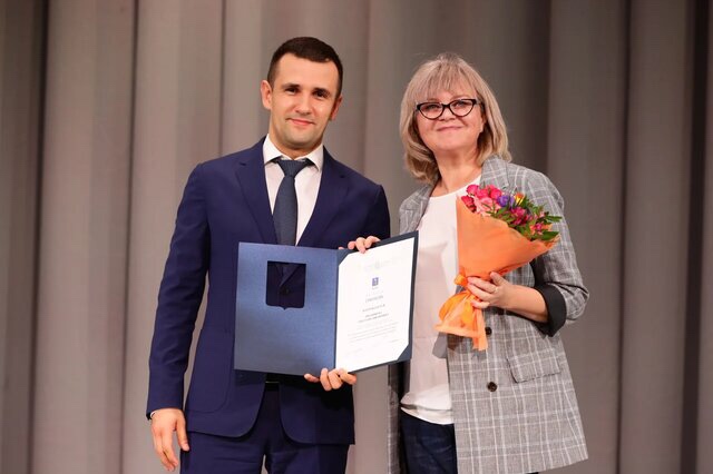 За большой вклад в развитие профсоюзного движения Подмосковья Тарас Ефимов наградил почётной грамотой межрегиональной общественной организации Российского профсоюза работников культуры директора детской музыкальной школы № 1 Елену Найдёнову.
