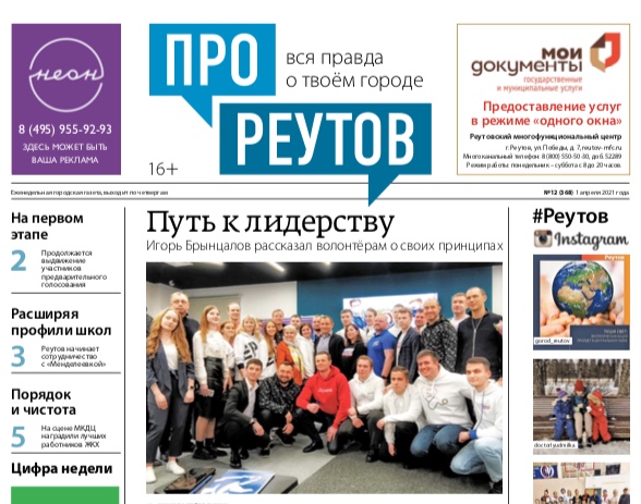 В четверг 1 апреля вышел 12-й (368) выпуск бесплатной еженедельной газеты «ПроРеутов».