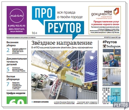 В четверг 22 апреля вышел 15-й (371) выпуск бесплатной еженедельной газеты «ПроРеутов».