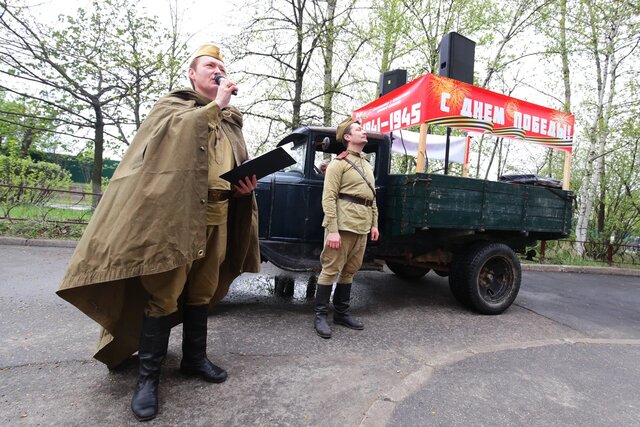 Ранним утром участники акции «Фронтовые бригады» на ретромобилях выступили во дворах домов муниципалитета, в которых живут участники Великой Отечественной войны, для них исполнили песни военных лет. На улице Победы были представлены макет дивизионной пушки ЗИС-3, советский автомобиль ГАЗ-ММ с зенитной установкой, бронетранспортёр БТР-40 и другие экспонаты, радом с которыми могли сделать фото на память все желающие. А ученики и преподаватели городских школ провели для жителей мастер-классы и подготовили выставки, посвящённые Великой Отечественной войне».