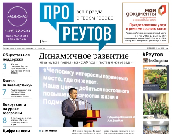 В четверг 20 мая вышел 19-й (375) выпуск бесплатной еженедельной газеты «ПроРеутов».