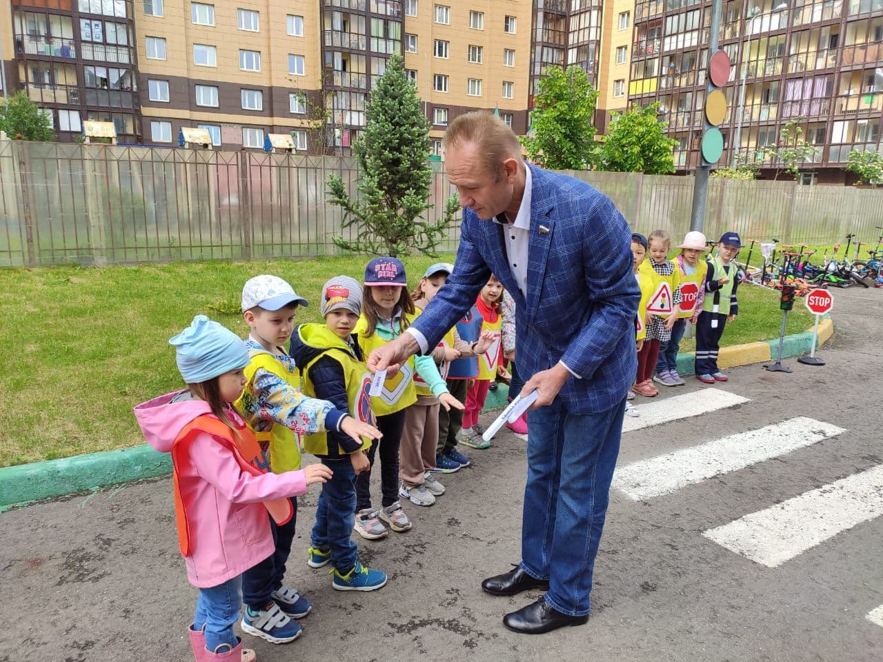 Депутат городского Совета, член фракции партии «Единая Россия» Дмитрий Легчилов в рамках партпроекта «Безопасные дороги» совместно с сотрудниками ГИБДД провёл занятие по безопасности дорожного движения среди дошкольников. Мероприятие проходило в реутовском детском саду № 13 «Веснушки».