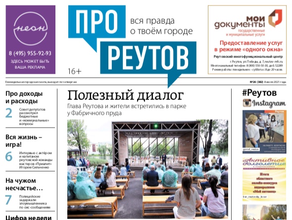 В четверг 8 июля вышел 26-й (382) выпуск бесплатной еженедельной газеты «ПроРеутов».
