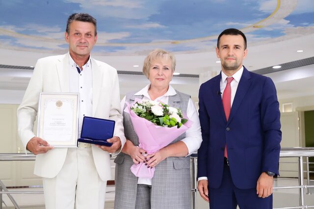 – Вручаем вам грамоту за сохранение семейных ценностей. Вы большие молодцы: чтите традиции, сохраняете настоящую традиционную семью. Значит, выбор был сделан правильно. Желаем вам, чтобы мы через несколько лет снова с вами встретились и в очередной раз поздравили вас с этим праздником, – сказал Станислав Каторов, вручая виновникам торжества почётную грамоту, цветы и телевизор в подарок.