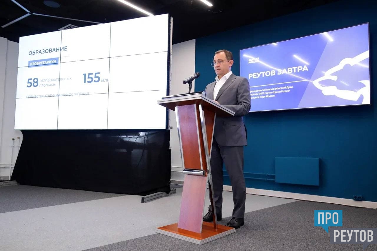 Одними из главных тем отчета председателя Московской областной Думы Игоря Брынцалова перед жителями подмосковного Реутова стали пятилетняя модернизация сферы образования в муниципальных учреждениях, стратегия развития дорожно-транспортной и спортивной инфраструктур, сообщает пресс-служба главы городского округа, секретаря местного отделения партии «Единая Россия» Станислава Каторова.