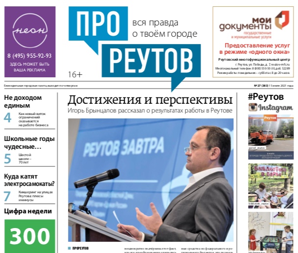 В четверг 15 июля вышел 27-й (383) выпуск бесплатной еженедельной газеты «ПроРеутов».