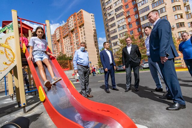 — Как вам горка? — поинтересовались спикер и градоначальник у детворы, которая уже вовсю играет на площадке.