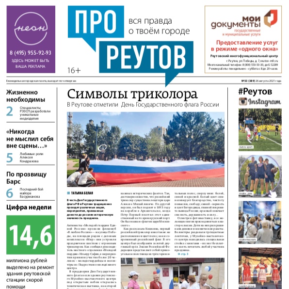 В четверг 26 августа вышел 33-й (389) выпуск бесплатной еженедельной газеты «ПроРеутов».