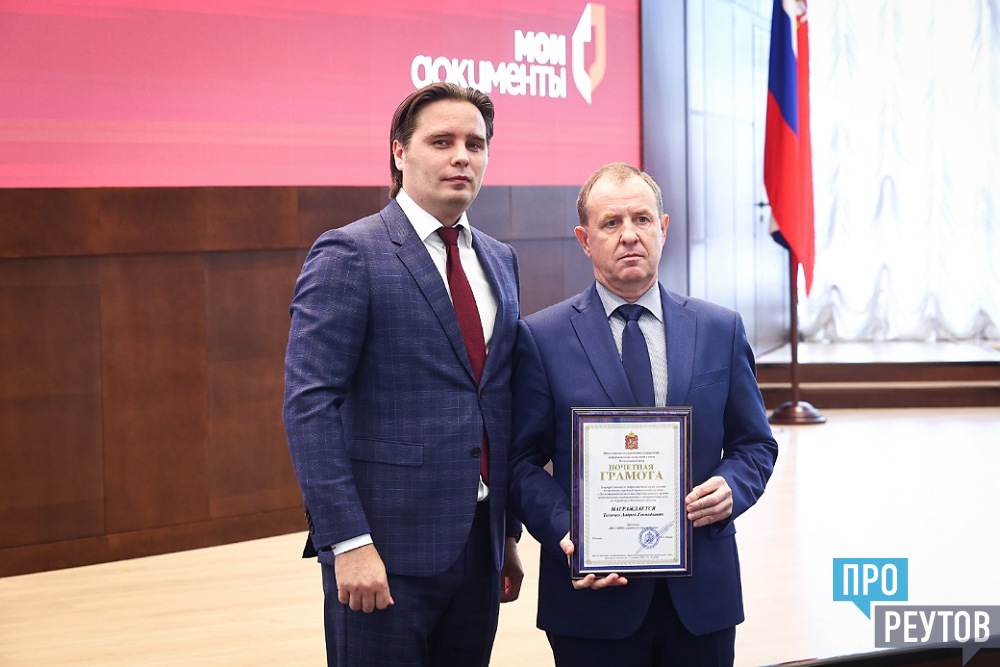 Директор многофункционального центра «Мои документы» подмосковного Реутова Андрей Толочко награжден почетной грамотой министерства государственного управления, информационных технологий и связи региона, сообщает пресс-служба главы городского округа Станислава Каторова.