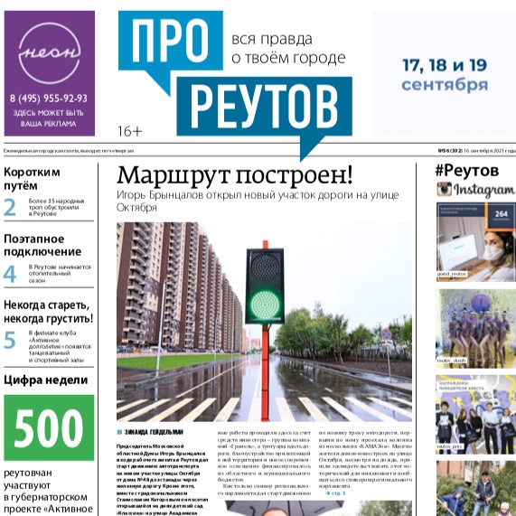 В четверг 16 сентября вышел 36-й (392) выпуск бесплатной еженедельной газеты «ПроРеутов».