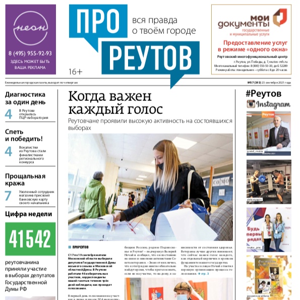 В четверг 23 сентября вышел 37-й (393) выпуск бесплатной еженедельной газеты «ПроРеутов».
