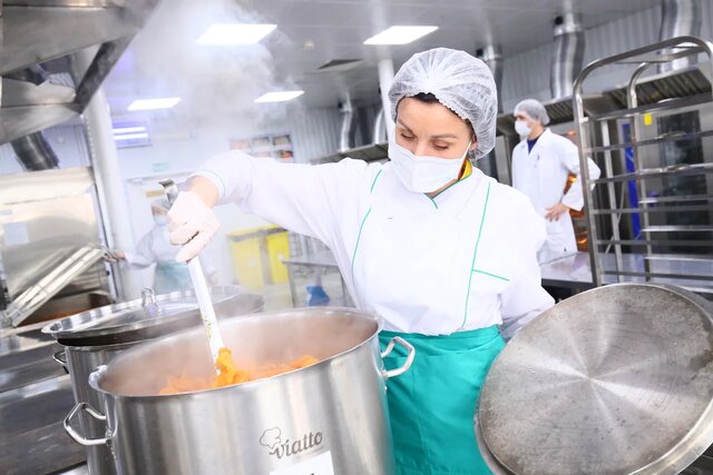 Комплекс оснащён высокотехнологичным оборудованием, что минимизирует ручной труд и фактор человеческой ошибки. Входное сырьё проходит многоэтапные проверки качества: каждая партия продуктов уходит на пробы в лаборатории и поступает в производство только после исследований. Кроме того, каждая порция блюда проходит через контрольные весы.