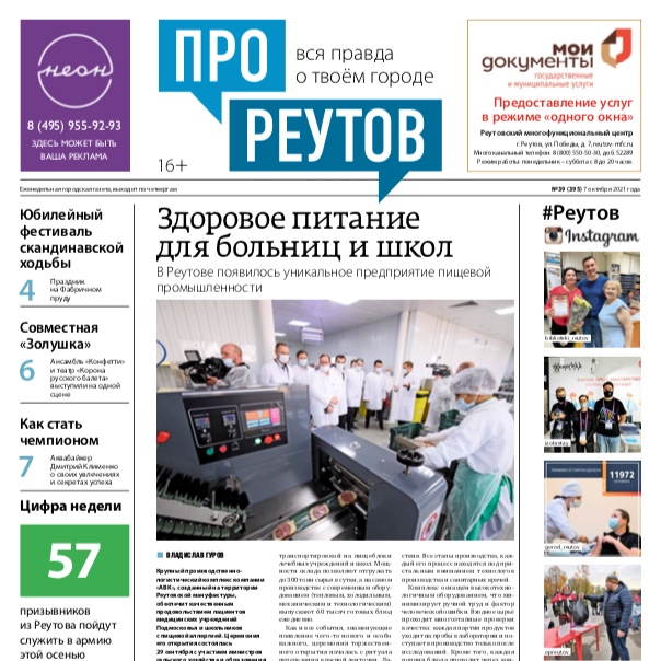 В четверг 7 октября вышел 39-й (395) выпуск бесплатной еженедельной газеты «ПроРеутов».