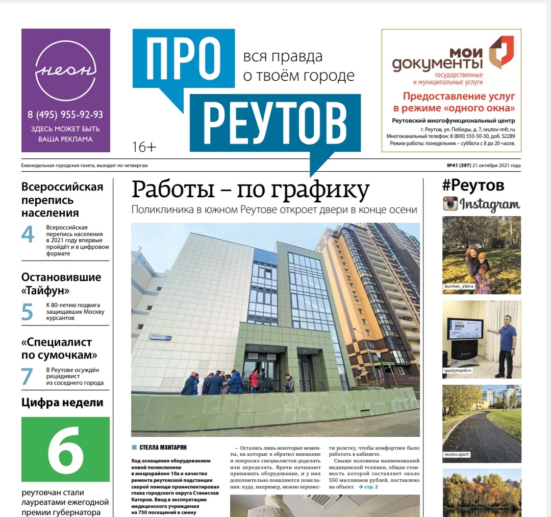 В четверг 21 октября вышел 41-й (397) выпуск бесплатной еженедельной газеты «ПроРеутов».