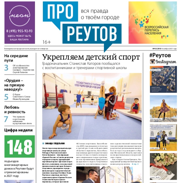 В четверг 3 ноября вышел 43-й (399) выпуск бесплатной еженедельной газеты «ПроРеутов».