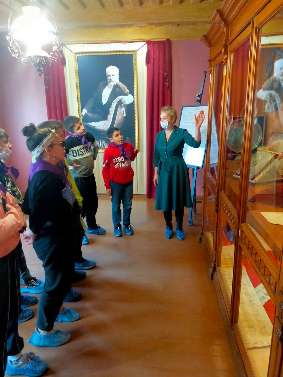 Школьники посетили знаменитый дом-музей П. И. Чайковского. Музей сильно пострадал в годы Великой Отечественной войны — во время оккупации немцы превратили его здания в казармы. Но личные вещи, библиотека и архив были вывезены на родину великого композитора — в город Воткинск, а затем возвращены после освобождения города.
