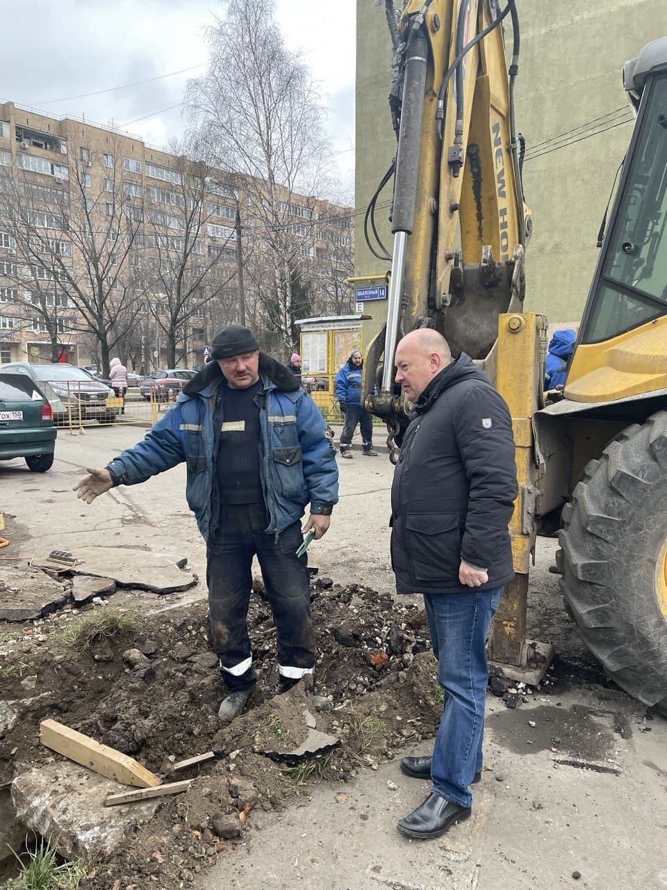 Выездную проверку хода работ по устранению повреждений на теплотрассе центрального отопления по Юбилейному проспекту, 10 провёл генеральный директор ООО «Р-Сетевая компания» Владимир Диденко.