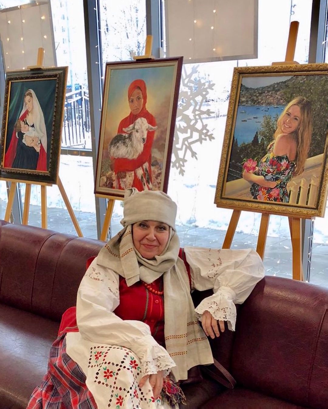 — Я чуть больше пяти лет назад впервые взяла кисть в руки. За это время у меня родилось два внука, были другие серьёзные события в семье, поэтому чистого времени для творчества у меня было года три с половиной… Вокруг столько удивительных людей! Был замысел сделать за это время как минимум 20 портретов, но получилось меньше, на этой выставке только некоторые из них. Поскольку мы с вами находимся на фестивале национальных культур, то для этой экспозиции я отобрала несколько портретов людей разных национальностей и из разных стран: вот бедуинка, вот — француженка, а это представительница моей родины — Беларуси.