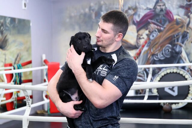 Кстати, дома у чемпиона тоже есть собака, которую он приютил полтора года назад.