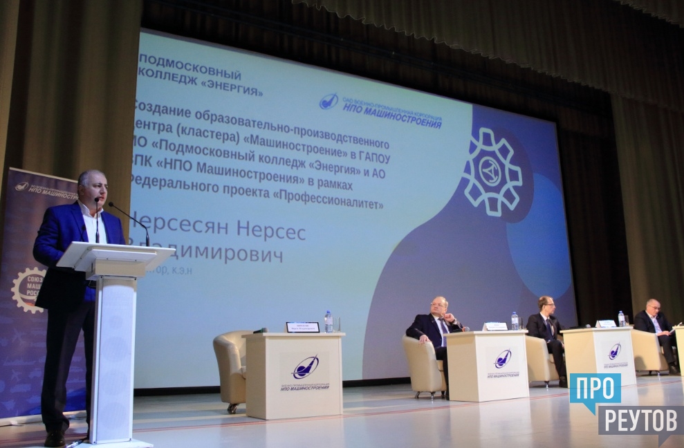 В число докладчиков, выступивших на пленарном заседании, вошёл член Регионального совета МОРО СоюзМаш, директор ГАПОУ МО «Подмосковный колледж «Энергия» Нерсес Нерсесян. Его доклад был посвящён проекту «Профессоналитет», смысл которого заключается в массовом внедрении дуального образовании и привлечении работодателей к подготовке профильных кадров. Реутов станет флагманом «Профессионалитета» в Подмосковье. Реализация проекта ляжет на плечи АО «ВПК «НПО машиностроения», колледжа «Энергия» и МОРО СоюзМаш.