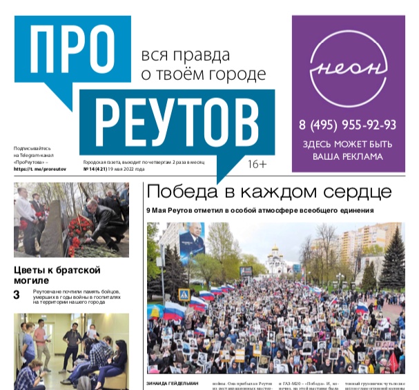 В четверг 19 мая вышел 14-й (421) выпуск бесплатной еженедельной газеты «ПроРеутов».