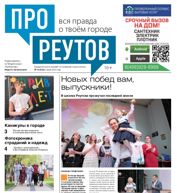 В четверг 2 июня вышел 15-й (422) выпуск бесплатной еженедельной газеты «ПроРеутов».