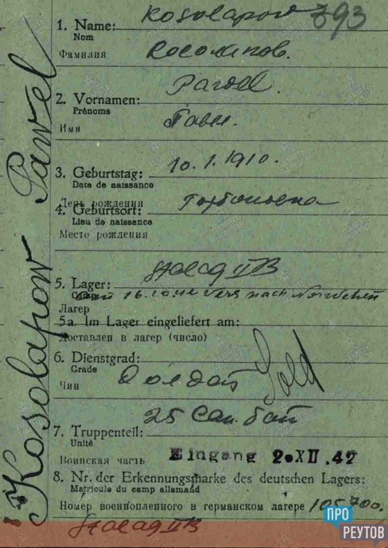 Среди военнопленных был Косолапов Павел Андреевич 1910 года рождения, призванный на службу Раменским РВК Московской области в сентябре 1941 года. По документам Центрального архива Министерства обороны Российской Федерации установлено, что на момент призыва в Красную армию жена Косолапова Павла Андреевича Косолапова Анастасия Анисимовна проживала в г. Раменское, ул. Красная, д. 25.