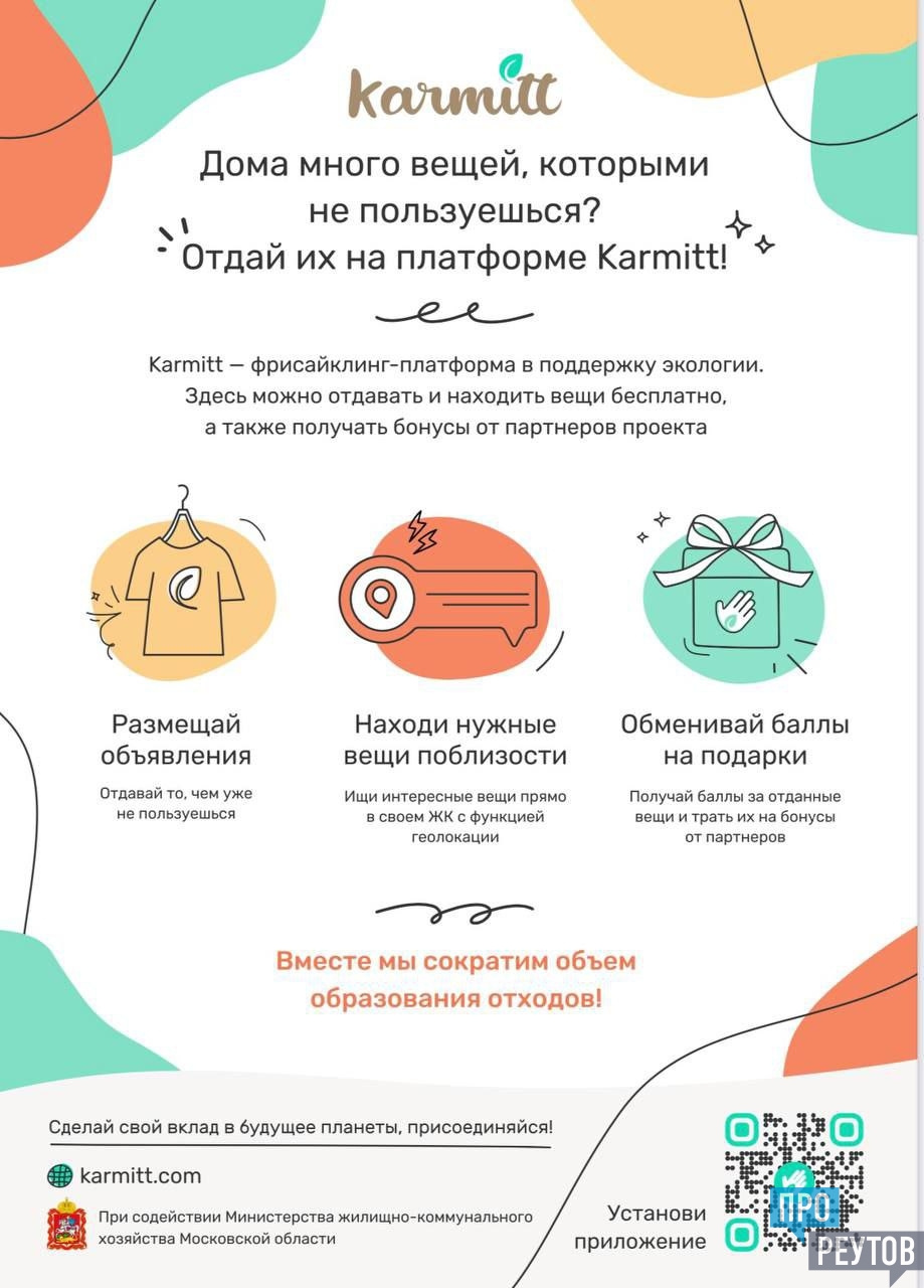 В основе проекта Karmitt — забота об экологии: чем больше вещей найдут новый дом, тем меньше будет отходов в окружающей среде. Зарегистрировавшись на онлайн-платформе Karmitt, каждый может стать активным участником проекта. Узнать подробности можно узнать на его сайте, а само бесплатное мобильное приложение Karmitt доступно