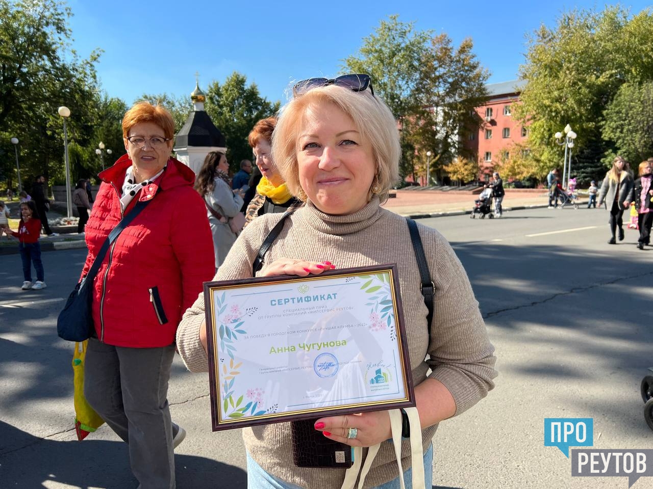 Помимо призовых мест, руководитель ГК «Жилсервис Реутов» Надежда Корнеева вручила специальный приз – кованую цветочницу «Велосипед» – Анне Чугуновой за озеленение придомовой территории на Юбилейном проспекте, 8.