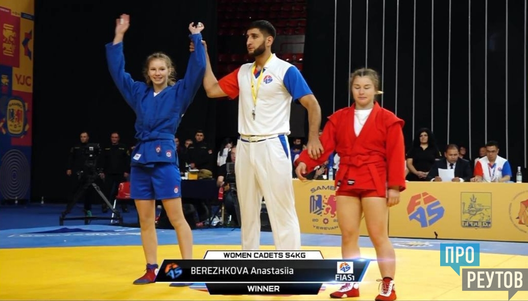 Воспитанники Спортивной школы Реутова блестяще выступили в Ереване, где прошло Молодёжное первенство мира по самбо. На высшую ступень пьедестала почёта поднялись Анастасия Бережкова (кадеты) и Вадим Дедов (юниоры).