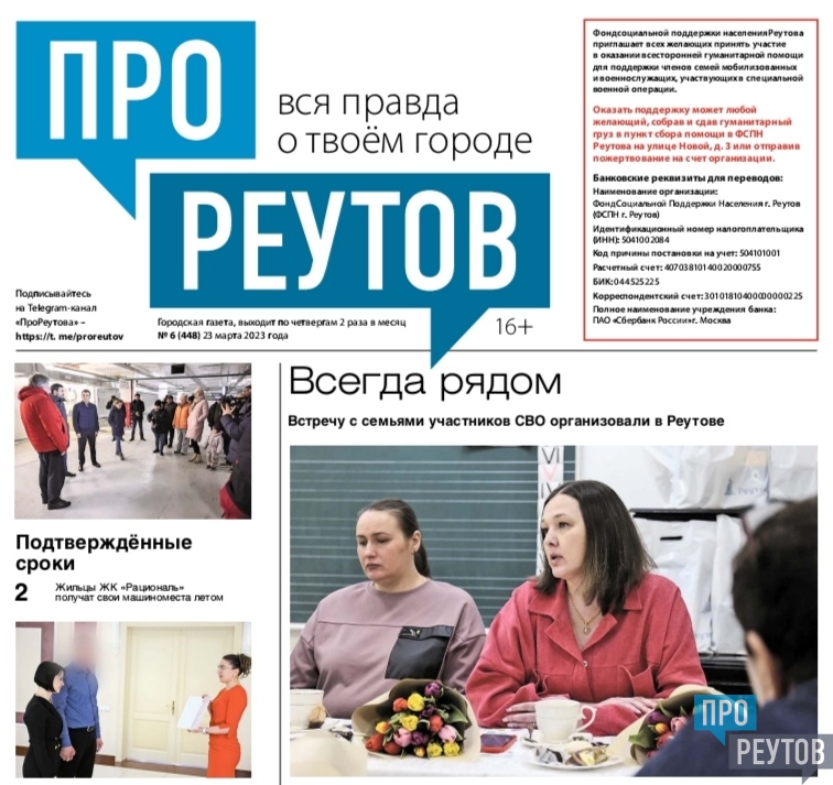 В четверг, 23 марта , вышел 6-й (448) выпуск бесплатной еженедельной газеты «ПроРеутов».