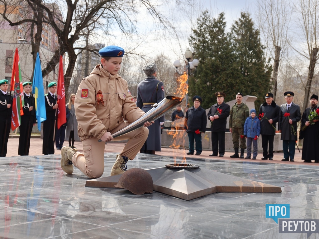 Состоялась церемония переноса Вечного огня мемориала Славы «Реутовцам, погибшим за Отечество» к временному постаменту в часовне, расположенной на территории мемориального комплекса.