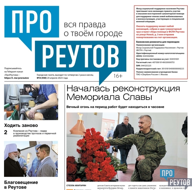 В четверг, 20 , вышел 8-й (450) выпуск бесплатной еженедельной газеты «ПроРеутов».